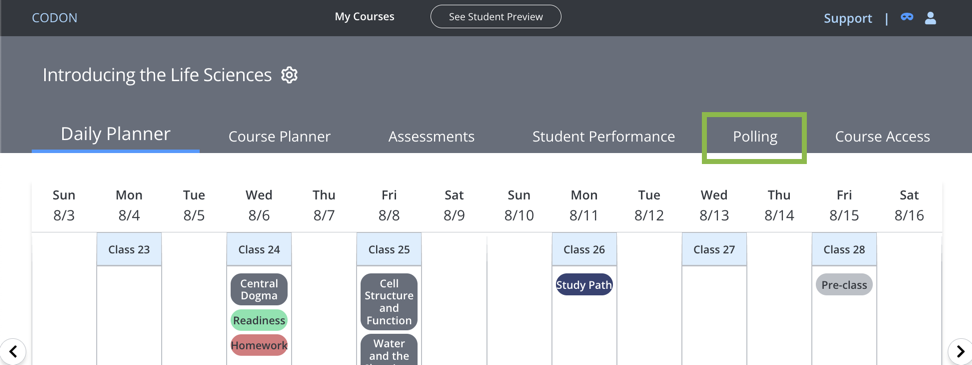 Running polls in class - Before class, log in to Codon on the desired device/browser.