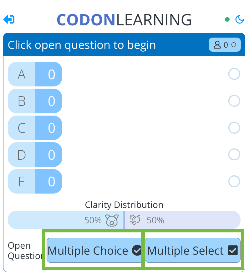 - Repeat the steps above as needed to open additional multiple choice and multiple select polling questions.