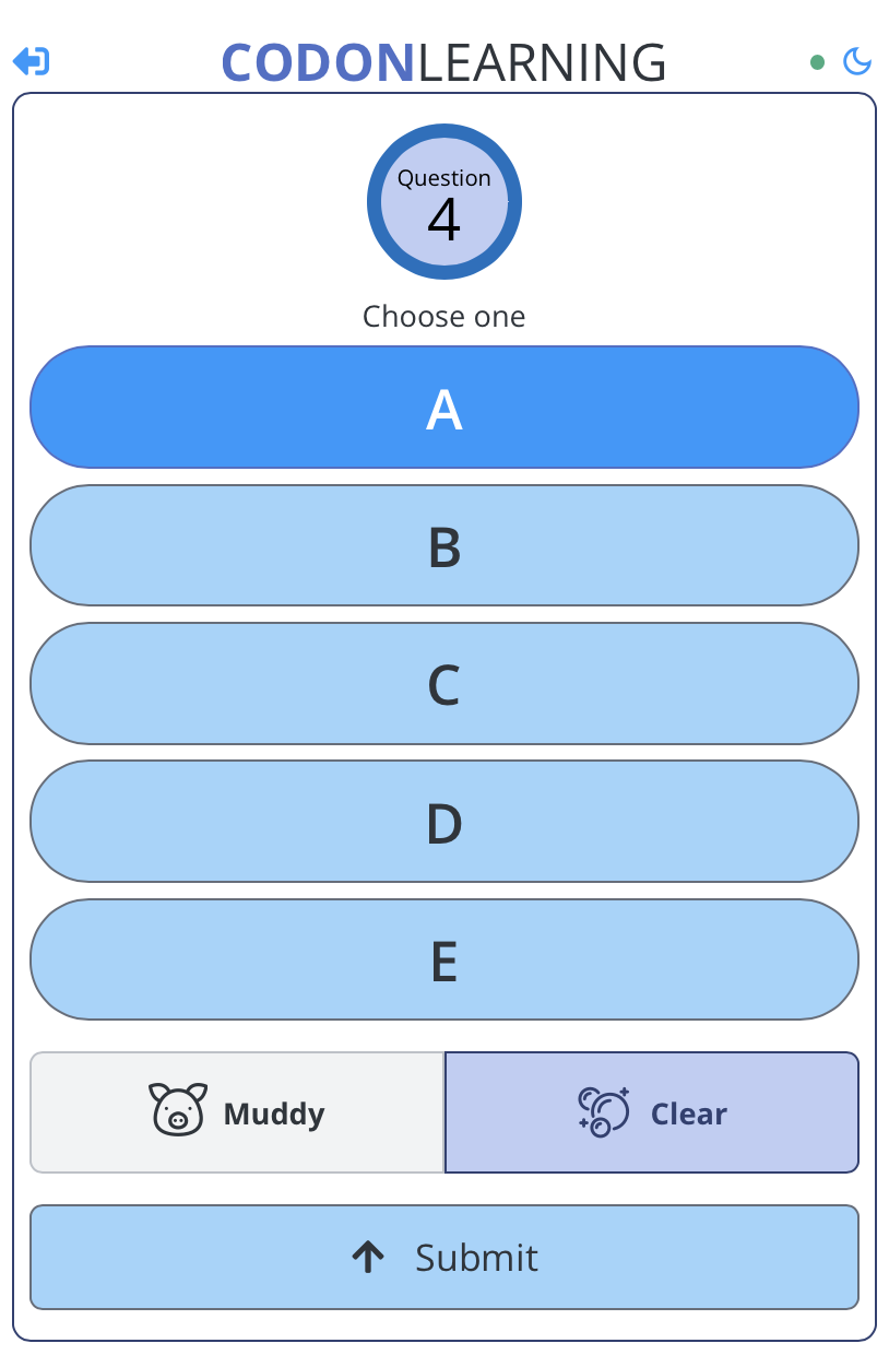 *A multiple choice question has instructions to “Choose one” and more rounded response target buttons.
