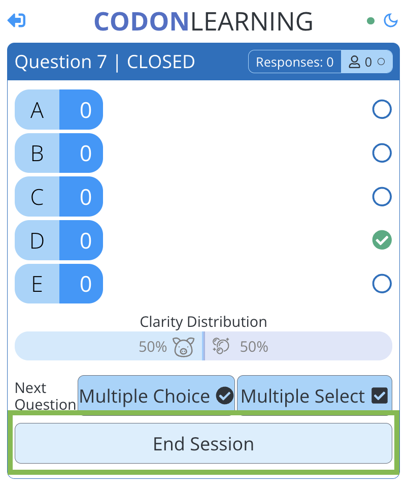 - Click “End Session” to clear out the session for next time. You will be asked to confirm. You can not restart closed polling sessions.